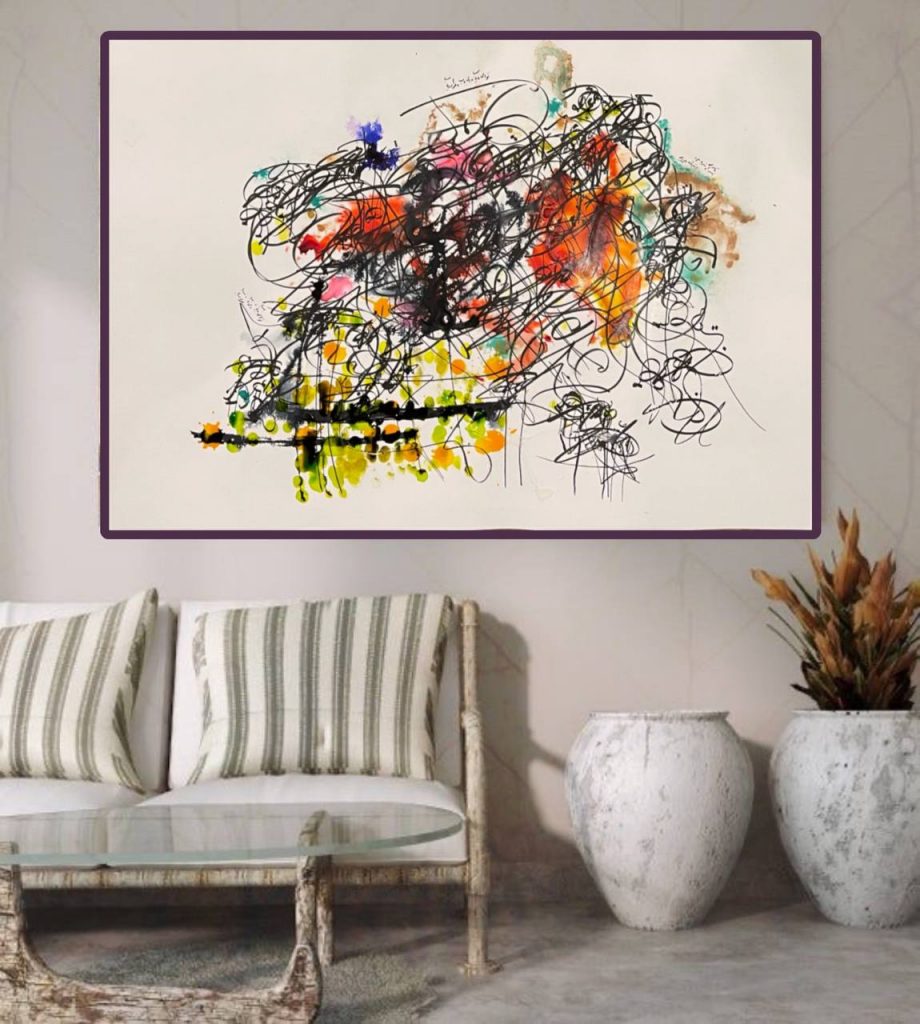 This prize-winning work combines colour and Persian calligraphy with lines of Persian poetry. It is one of my signature styles.